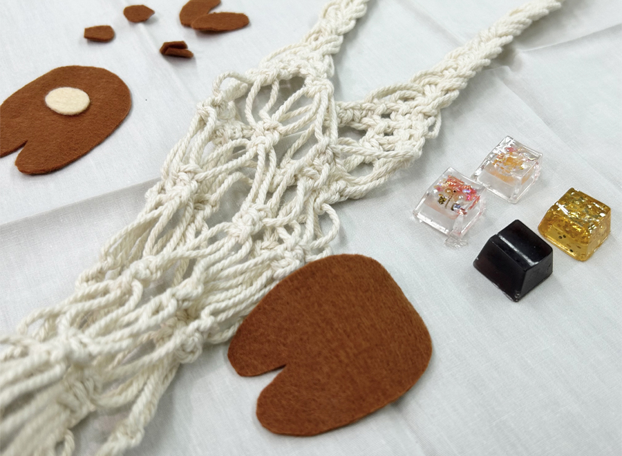 ハンドメイドなら何でもOK!これまで、羊毛フェルト・レジン・マクラメ編み・クラフトバックなどを作成しました。