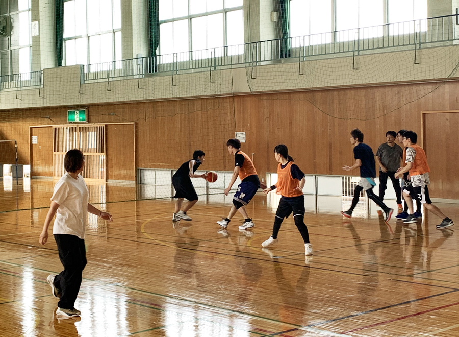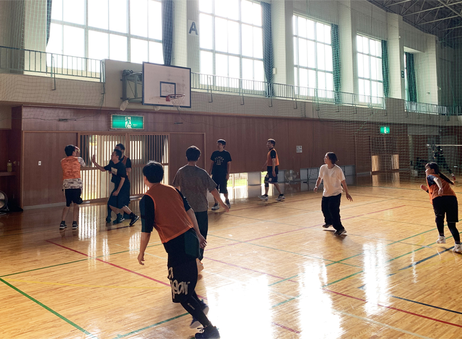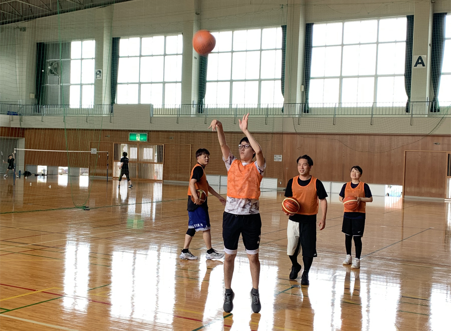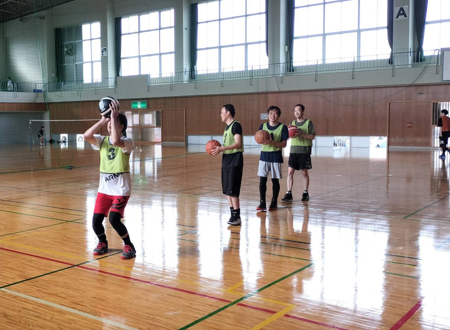 月に1回程度のペースで、近隣の体育館を借りてバスケットボールをしています。