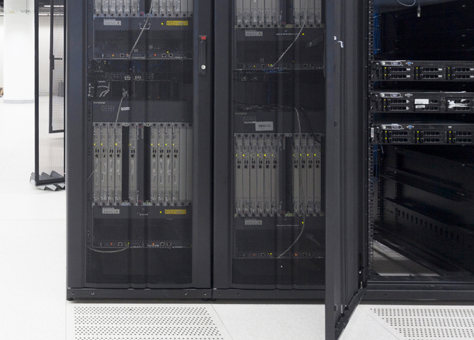 自家発電機やUPS装置の電源設備はもちろんのこと、各種機器の冗長化など、耐災害・耐障害に備えた万全の対策を実施しています。