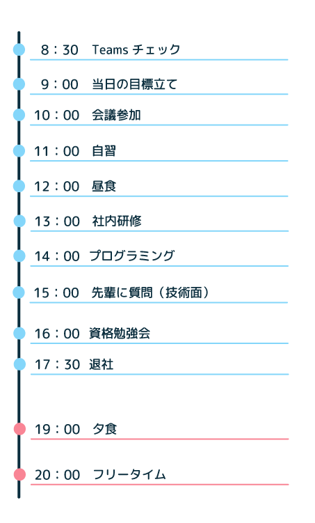 その期間で、先輩社員の方とお話する機会や同期との交流を深めることができたため、会社の雰囲気に慣れてから技術面の研修に進むことができました。