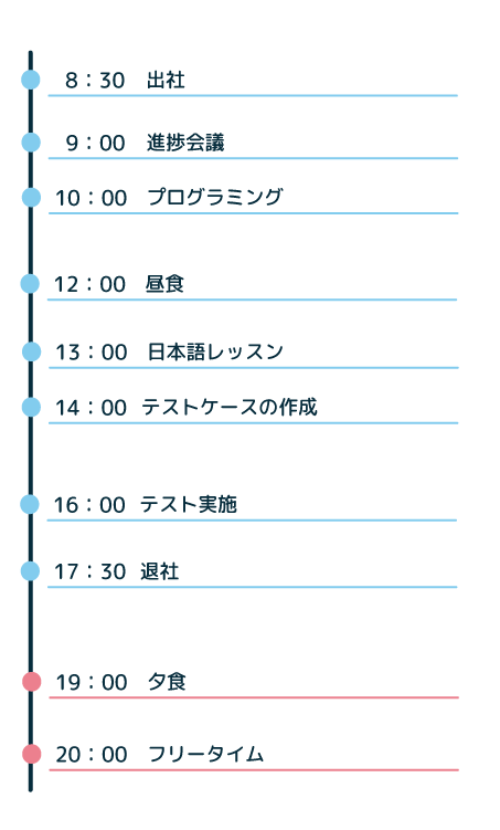 日本語とプログラミングのトレーニングと授業があるので、整った環境の中仕事ができることが魅力だと感じました。また、自分自身も成長し続けられるんじゃないかと思い、当社への入社を決意しました。