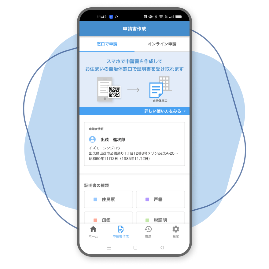 住民票の写しなどの交付申請書を「書かずに」「スマホで」作成できます。1問1答形式で簡単に作成ができます。