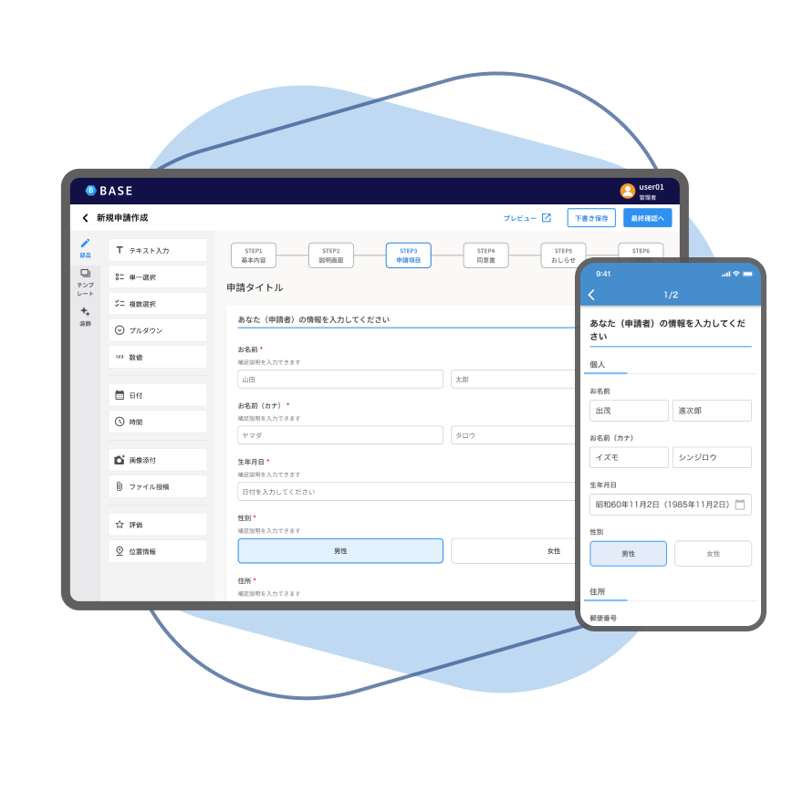 申請フォーム機能は、申請やアンケートなどの入力フォームを、自治体職員様が自由に作成・公開できる機能です。 作成した申請フォームは、LGaPアプリ上で住民向けに公開され、住民からの回答はオンラインで受け付けることができます。