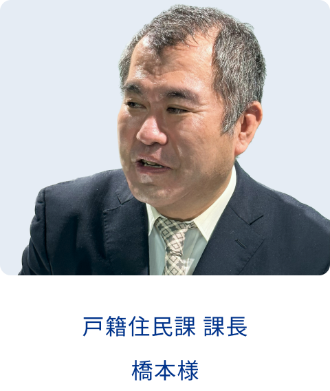 戸籍住民課 課長の橋本様、戸籍住民課の小林様に窓口DXソリューション導入の背景と効果について伺いました。