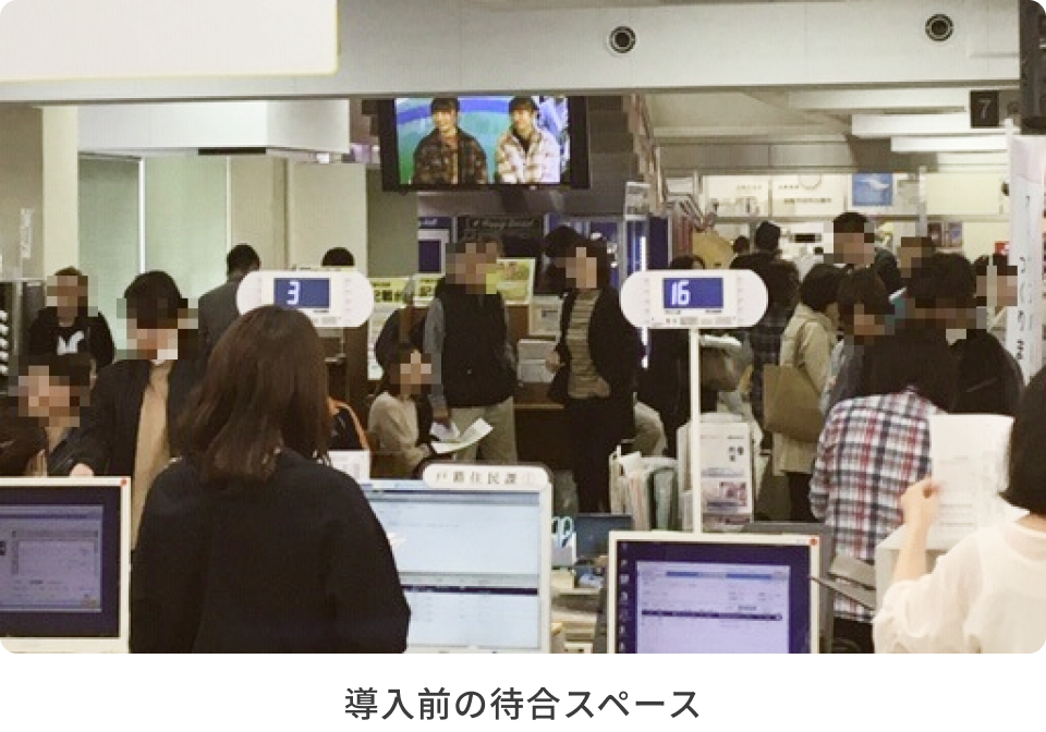 松阪市では来庁時の住民への負担の多さが課題となっていた。特にピーク時には一人あたり1時間半にもおよぶ滞在時間がかかり、待合スペースは混雑を極めていたという。