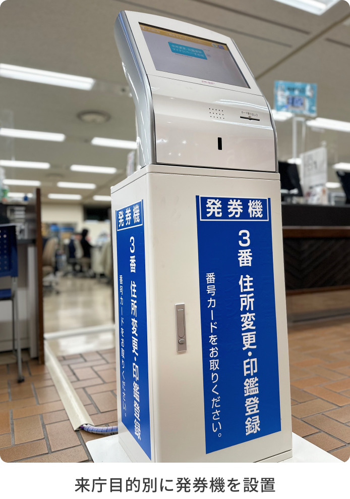 邉谷本様:以前は住所異動に関してはローカウンターが1窓口、ハイカウンターが4窓口という構成でしたが、それをすべてローカウンターに変更して9窓口に変えました。これによって住民の方と職員がお互い座ることになり、目線が合ってコミュニケーションが取りやすくなりました。今までは、職員が座ってお客さんが立って受付という状態だったので、どうしても職員はお客さんを見上げながらの接遇になってしまい、お互いに疲れてしまう体勢でした。