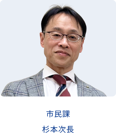 市民生活部次長(兼)市民課長の杉本様、市民課の邉谷本様に窓口DXソリューション導入の背景と効果について伺いました。